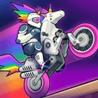 Wheelie Cross challenges you to perform the perfect wheelie! Maintain balance, collect coins, and unlock 12 bizarre vehicles, from steam-powered motorcycles to flying unicorns, on a course filled with exciting obstacles.